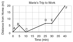 Marie traveled from her house to work as shown in the accompanied graph. What could be a possible conclusion to what Marie is doing from points D to E?