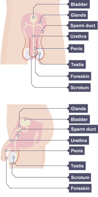 Sexual Intercourse is when a man [blank_start]places his penis into a woman's vagina[blank_end]. It the woman's [blank_start]ovary[blank_end] has released an [blank_start]egg[blank_end] and her cervix is open, then the sperm created from the man's testis can travel through the [blank_start]vagina and into the uterus[blank_end], where the sperm face many challenges. After many of the sperm die, the ones remaining travel into the oviduct where the first sperm will [blank_start]fertilise[blank_end] the egg. If fertilised, then the egg will travel down into the uterus and will then eventually grow into a baby. Nevertheless, if the egg is not fertilised then it will travel out of the vagina. Then the [blank_start]menstrual cycle[blank_end] will restart with the woman having her period.