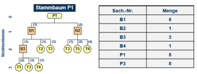 Die Fragestellungen "Woraus besteht ein Erzeugnis?" und "Worin ist ein Teil enthalten?" werden durch die folgenden Betrachtungsarten adressiert: