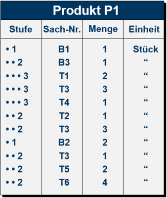 Zu welcher Art einer Stückliste passt die folgende Aussage: