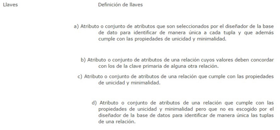 Relacione el concepto de llave con su definición