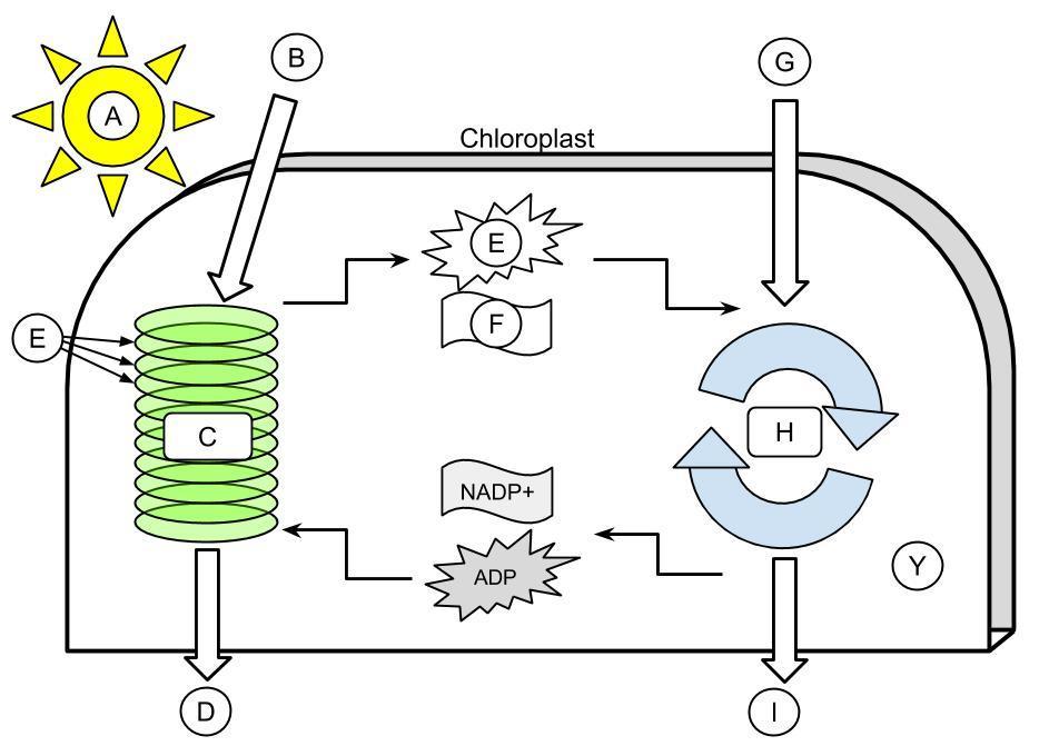 Photosynthesis quiz showing the light-dependent reaction and the Calvin cycle
