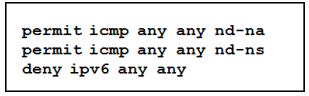 • These are optional ACEs that can be added to the end of an IPv6 ACL to allow ICMP messages that are defined in object groups named nd-na and nd-ns.