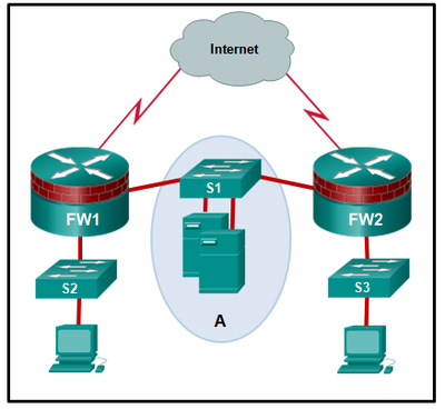 Refer to the exhibit. The network "A" contains multiple corporate servers that are accessed by hosts from the Internet for information about the corporation. What term is used to describe the network marked as "A"?
