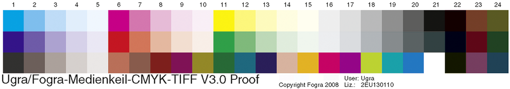 Ein Proof mit ausgemessenem Ugra/Fogra Medienkeil mit Datum und Unterschrift des Kunden