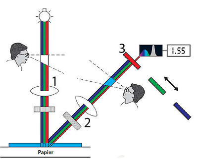 1 = Polarisationsfilter, 2 = Optik, 3 = Farbfilter
