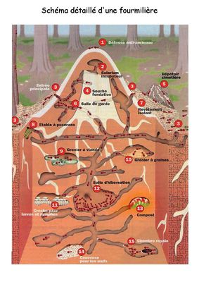Les [blank_start]milles-pattes[blank_end] se nourrissent de la litière en la découpant et cela la rend plus disponible pour la mésofaune, la microfaune et la microflore. Son rôle sur la structuration des sols est limité mais il permet d'enrichir le sol en [blank_start]minéraux[blank_end] par ses déjections.