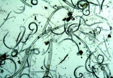 Les [blank_start]nématodes[blank_end] bénéfiques pour le sol peuvent être [blank_start]saprophages[blank_end] (se nourrissent de matière organique) ou [blank_start]carnivores[blank_end] (se nourrissent d'autres microorganismes de la microfaune et la microflore). Les nématodes bénéfiques permettent de rendre les [blank_start]minéraux[blank_end] plus facilement disponibles par les plantes. Les nématodes carnivores permettent de rajeunir les populations de microorganismes.