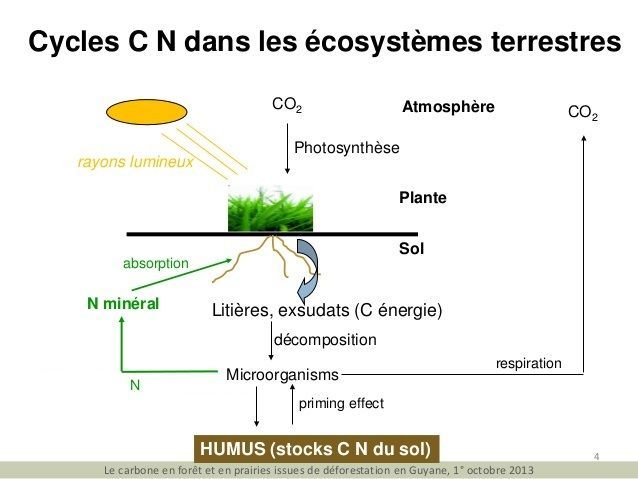 [blank_start]4[blank_end]) Les minéraux du sol peuvent être ajoutés à la chaîne de carbone de l'humus (désirable)