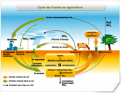 Les ions négatifs (anions) sont très mobiles et hautement solubles. Ils ne sont pas retenus par les charges négatives du complexe argilo-humique donc ils sont facilement lessivés. De plus, ils ne partent jamais seuls (NH4, K+, CA2+, Mg2+).