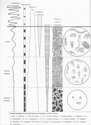 [blank_start]1[blank_end]) La litière, qui est composée de la matière organique brute, est décomposée pour donner l'humus brut;