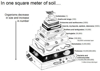 Le rôle principal de la mésofaune est de décomposer la matière organique brute pour la rendre accessible à la microfaune et à la microflore. La mésofaune est composée d'organismes pluricellulaires tels les tétranyques et les collemboles.
