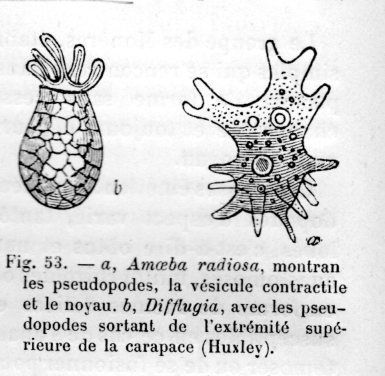 Les amibes sont des grosses cellules (unicellulaires) classées dans les animaux car elles ne sont pas capables de faire leur propre sucre par la photosynthèse. C'est la dernière étape pour rendre les minéraux accessibles.