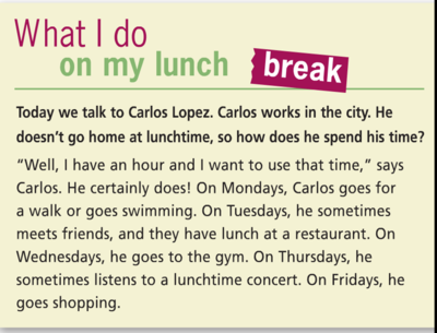 No, he [blank_start]does[blank_end]n't. He [blank_start]goes[blank_end] to the gym and on [blank_start]Tuesdays[blank_end] he sometimes [blank_start]meets[blank_end] friends