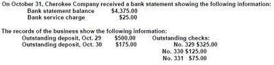 Assuming that the bank statement balance is correct, what is the correct Cash account balance on October 31?