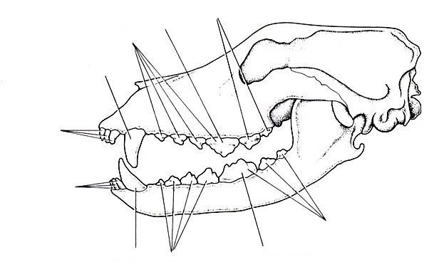 Canine teeth - label molars, premolars, carnassial, incisors, canines