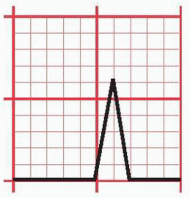 Here's some ECG paper. It's comprised of, in Dr Flynn's terms, "big squares" and "little squares". Each big square is 5x5 little squares. For one LITTLE square, select the correct size in mm, the correct voltage its height represents in mV of current, and the correct time period its width represents in seconds.