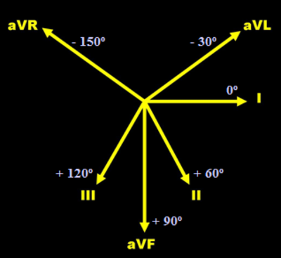 The fourth step is interpreting the QRS complex (representing depolarisation of the ventricles), which has several sub-steps. First, consider the cardiac axis. The wave of depolarisation spreads in multiple directions through the ventricles. The differing magnitudes and directions of the various depolarisation currents can be “summed” to form a resulting electrical vector, which is known as the cardiac axis.