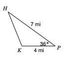 Find the area of each triangle to the nearest tenth. A = [blank_start]23[blank_end] mi²
