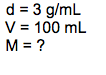 Find the unknown quantity in grams/mL: