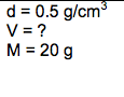You have a different rock with a volume of 30cm3 and a mass of 60g. What is its density? (Round to the nearest tenth)