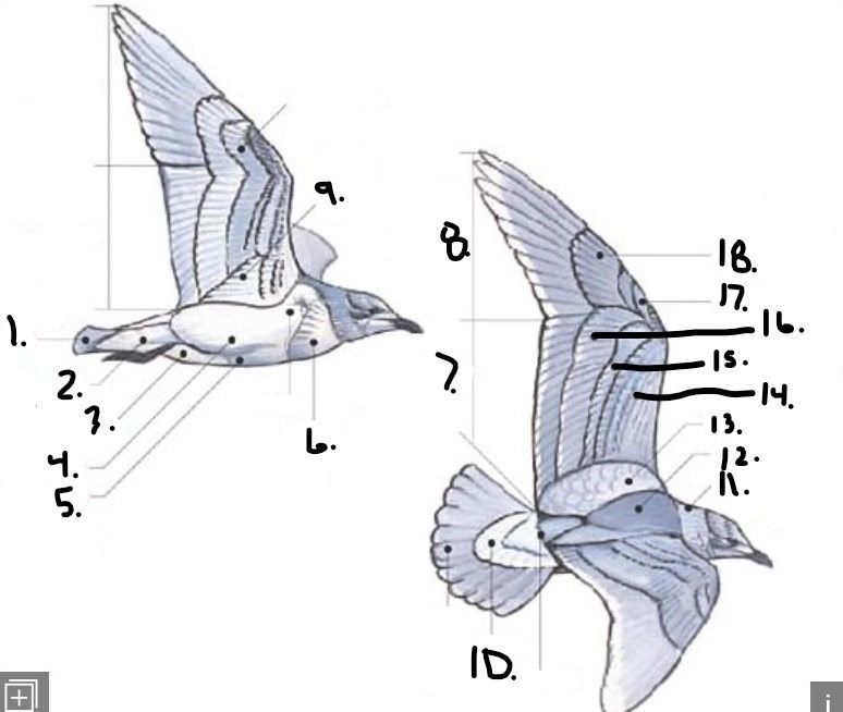 Label the areas indicated on the bird.