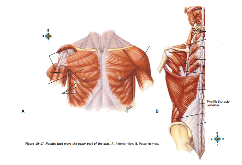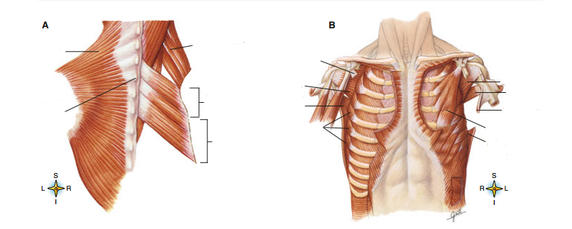 Label the following illustrations, using the terms provided: Muscles acting on the shoulder girdle