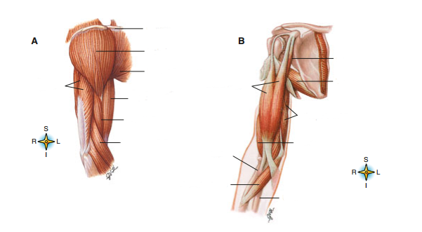 Label the following illustrations, using the terms provided: Rotator cuff muscles