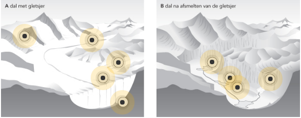 Onder de gletsjer bevind zicht de middenmorene.
