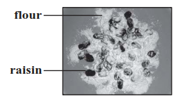 Sophie spills some flour onto some raisins.