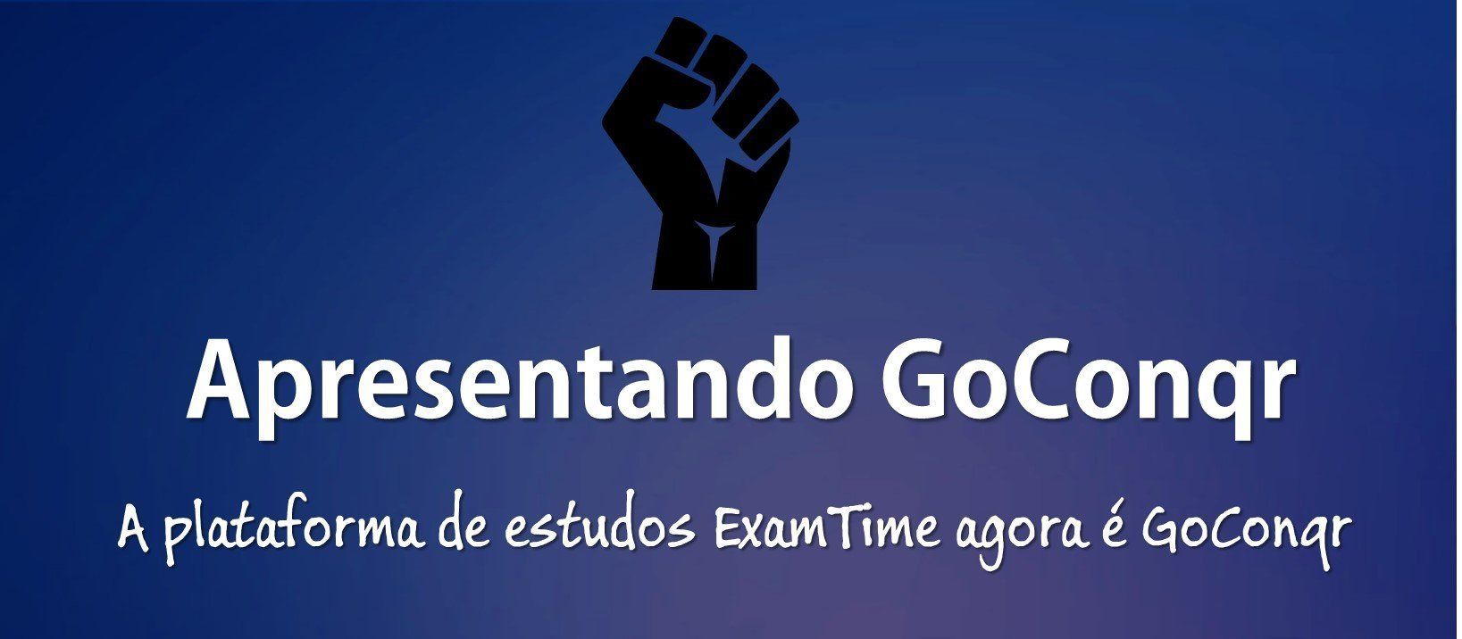 Estamos felizes em anunciar que a plataforma de aprendizagem ExamTime será, a apartir de agora, chamada de GoConqr. GoConqr (pronunciado ‘gou conquer’) vem das palavras inglesas ‘Go’ (Ir) e ‘Conquer’ (Conquistar), que estão relacionadas com crescimento, conquista e realização pessoal. E para nós, a aprendizagem como um processo contínuo se baseia nestes conceitos, e vai muito além de estudar para os exames.