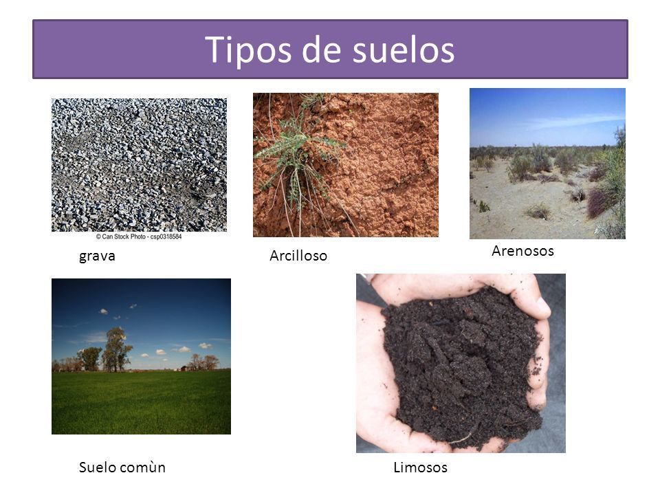 Suelos arenosos: son aquellos suelos que no retienen el agua, al poseer poca materia orgánica no son aptos para la agricultura.