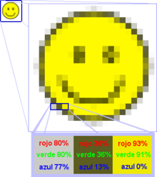 A las imágenes en mapa de bits se las suele definir por su altura y anchura (en píxeles) y por su profundidad de color (en bits por píxel), que determina el número de colores distintos que se pueden almacenar en cada punto individual, y por lo tanto, en gran medida, la calidad del color de la imagen.