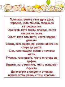 4. Възпитаване на уважение и привързаност към връстници, на желание за активно взаимодействие с тях, възпитаване на симпатия, вежливост и добронамереност към различието на другите.