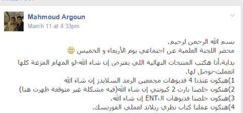 ما بعد الاجتماع الأولولإنهم عملوا الاجتماع على مرتين ووزعوا شيكولاتات :D وزودوا على الخطة وحطوا أفكار جديدة ووزعوا المهام وتوسعوا في شغل اللجنة :) ما شاء الله ربنا يعينهم ويبارك فيهم
