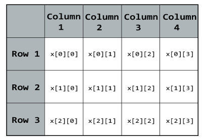Two-Dimensional Arrays are a little more complex than One-Dimensional Arrays, but really they are nothing more than an array of arrays, in other words an array in one row and another in the next row.A two-dimensional array lends itself to a visual display in rows and columns. The first index represents a row and the second index represents a column.