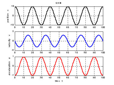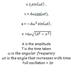 1 way to represent the simple harmonic motion of an object is to draw graphs of its displacement, its velocity & its acceleration against time.Remember that displacement is a vector quantityDisplacement in 1 direction are taken as positive and those in the opposite direction as negative.1 complete oscillation means a movement from 1 extreme to the other and back again. The time this takes is called the time period. The number of oscillations in 1 second is called frequency. Frequency is measured in Hertz(Hz).The amplitude A of the motion is the maximum displacement. Note that this is measured from the centre of the oscillation.