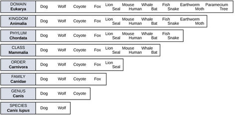 Caption: : The taxonomic hierarchy of biological classification of species identifies species to easily identify, predict characteristics between species and find evolutionary links from a shared common ancestor. Scientists worldwide can share research.