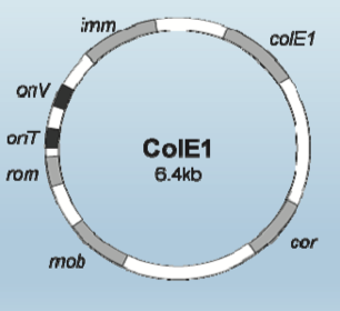 ColE1 however, operates under a different mechanism, taking advantage of a host encoded recombinase that acts specifically at 35bp region - cer. The host gene is names xerC.