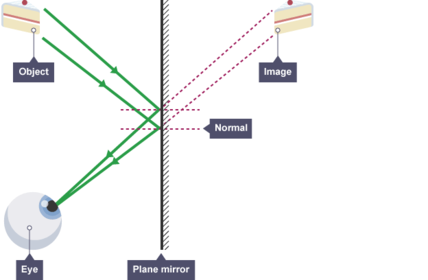 You can use a ray diagram to show how an image in a mirror forms.Notice that the ‘real’ rays, the ones leaving the object and the mirror, are shown as solid lines. The ‘virtual’ rays, the ones that appear to come from the image behind the mirror, are shown as dashed lines. Remember that each incident ray will obey the law of reflection.