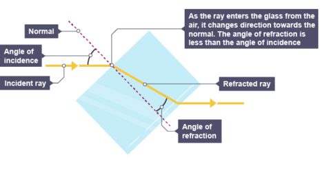 The diagram shows how this works for light passing into, and then out of, a glass block. The same would happen for a Perspex block: