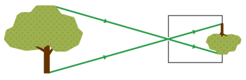 Caption: : A ray diagram to show focusing in a pinhole camera