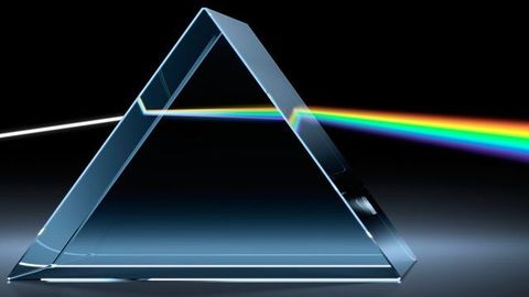 White light is a mixture of many different colours, each with a different frequency. White light can be split up into a spectrum of these colours using a prism, a triangular block of glass or Perspex.Light is refracted when it enters the prism, and each colour is refracted by a different amount. This means that the light leaving the prism is spread out into its different colours, a process called dispersion.