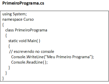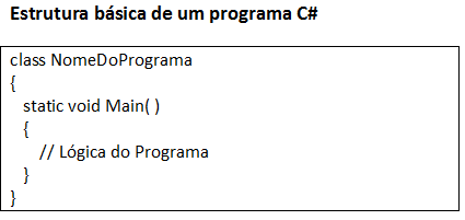 Por padrão esta classe, que contém o método Main deve ter o mesmo nome do programa.