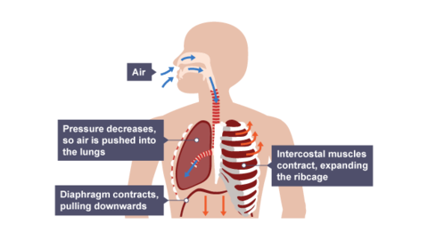 The ribs, intercostal muscles and diaphragm all play important roles inventilation (breathing).