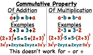 These are some properties used with Positive Integers 1.Communicative property-the variables are interchangeable (think of commuters changing seats in a bus)- i.e m + n = n + m (they are interchangeable and the result is the same.-i.e (m)(n) = (n)(m) (the only difference here is we are multiplying )
