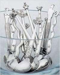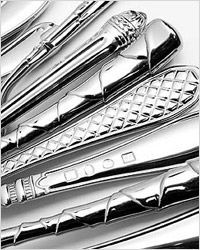 Столовые приборы стали произведением искусства очень давно. «Столовое серебро» было символом аристократизма и отличало простолюдинов от знати не только по наличию предметов роскоши, но и по умению пользоваться столовыми приборами и соблюдать этикет. В старом английском журнале можно встретить совет: сделайте отверстие в серебряной чайной ложке, чтобы приучить ребёнка использовать её только для размешивания сахара и вылавливания чаинок, но не для питья чая или насыпания сахара. В конце 18 века металлические ложки перестали быть признаком знати; в любой семье были ложки из бронзы или олова. В начале 19 века был изобретён сплав меди с никелем и цинком, который был очень похож на серебро и назывался аргентаном, альфенидом или мельхиором. Мельхиоровые ложки быстро завоевали популярность в Европе и России. В середине 19 века был период увлечения алюминиевыми приборами, которые сейчас ассоциируются с советским общепитом. За столом Наполеона III алюминиевые ложки подавались только императору и самым уважаемым гостям, всем остальным приходилось есть позолоченными приборами.