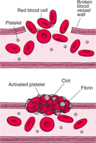 blood vessels are usually smooth- when cut they become rough; this causes a chemical to be released.