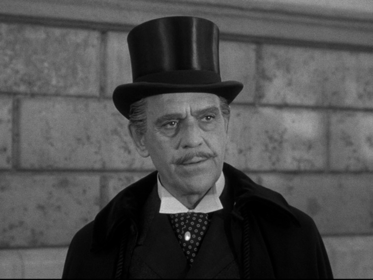they pass a strange-looking door (the entrance to Dr Jekyll's laboratory).