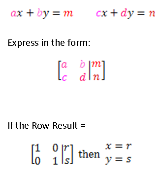 After expressing in the correct form, use Row Reduction methods on both sides to change the matrix into Echelon Form.For a 3x3 matrix, try to get either Row 2 or Row 3 to have 2 0's as this will make it easier to find either y or z.Then substitute this answer into the other equations to find x and either y or z (whichever one you didn't find 1st).